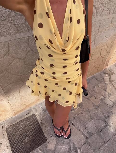 The Harlow Polka Halter Dress features a halter neck with a soft cowl neckline and gathers through the waist for a flattering fit. The dropped waist flows into a full hanky hem skirt, creating soft movement. Fully lined for comfort, it’s an effortless statement piece for any occasion.
